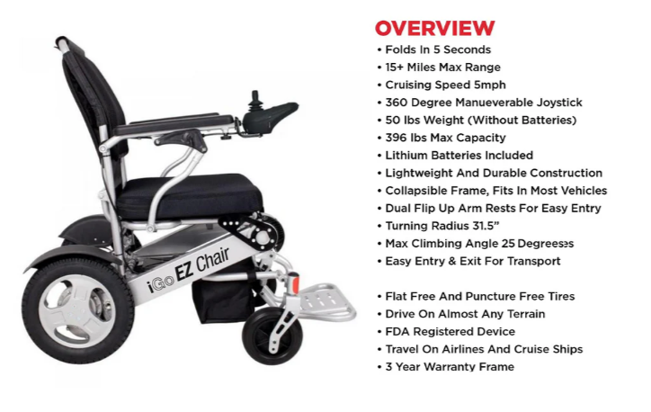 IGO EZCHAIR lux model Lithium Electric Folding Wheelchair Mobility Scooter